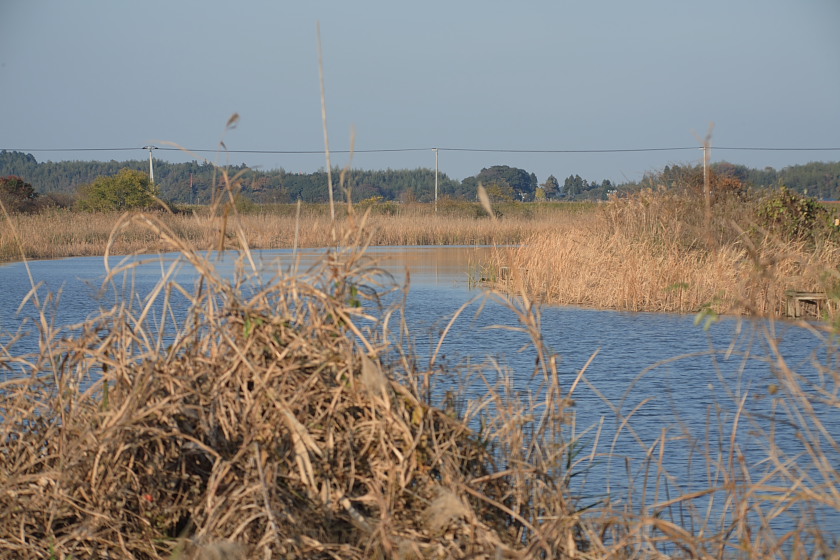 午後、心地よい天気に印旛沼の中央水路に行ってみると、葦原は既に茶色くなっていた。