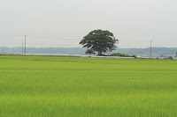 この花はほんとに真夏がよく似合う。 広い田圃に出た。 蒸し暑い空気にもかかわらず、一面に広がった爽やかな稲の緑を見るとどおいうわけだか心が和む。
