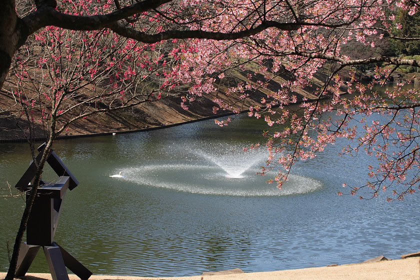 今頃になって日本海側は大雪との天気予報。 ほんとに今年はどうなってんの!・・と言いたい位だが、こちらは今日も朝から良い天気。 こんな日は池の縁の河津桜が見ごろになって綺麗だろうから見に行こう・・と一家で川村美術館に行くことにした。