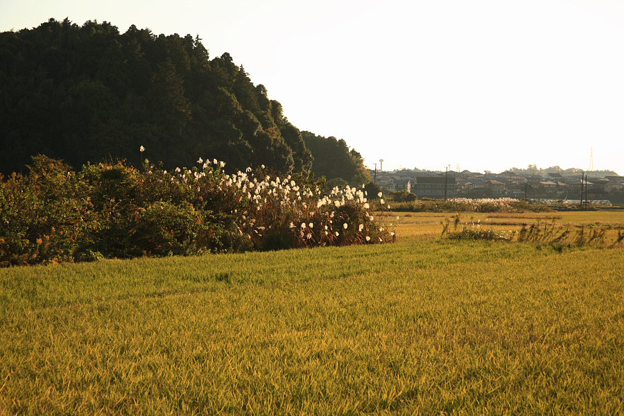 雲一つ無い快晴になった頃、辺りを散策してこようと時計を見るともう午後3時、釣瓶落としのこの時期のお日様はもうだいぶ傾いて、街外れの谷津田のススキが眩しく光っていた。